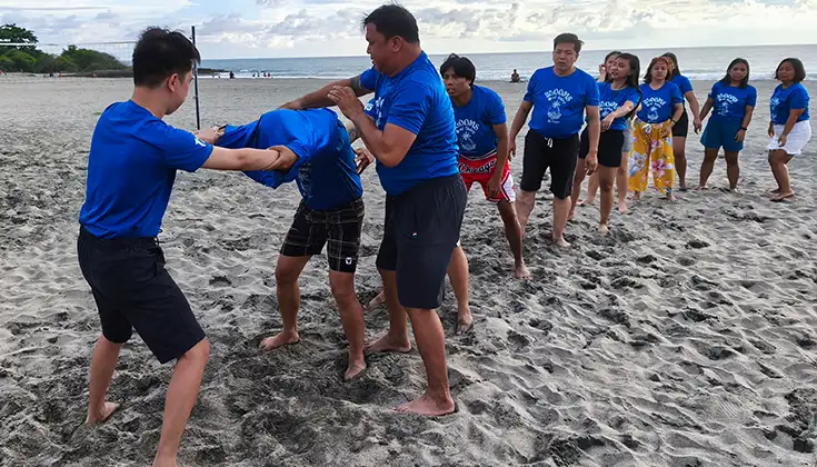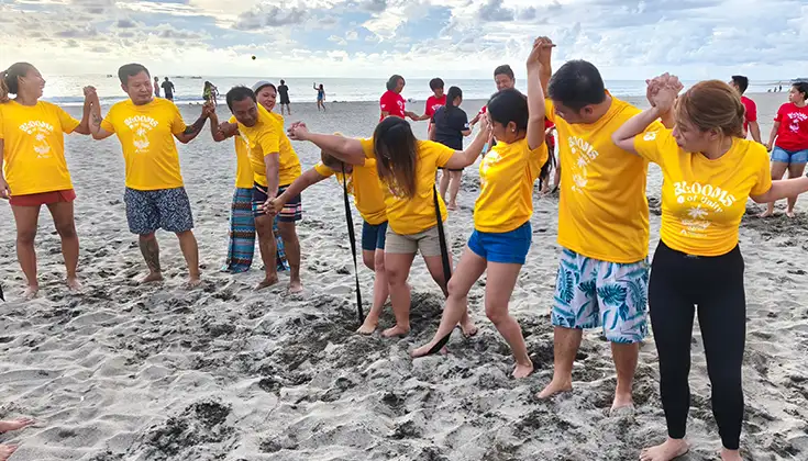 Later in the afternoon, the main team building event commenced by the beach, taking full advantage of La Union’s sun and sand. With the ocean as their backdrop, teams were grouped into Red, Blue, and Gold — each one bursting with energy and team pride. The challenges were crafted to highlight core competencies essential to any strong team: strategy, communication, trust, and coordination.